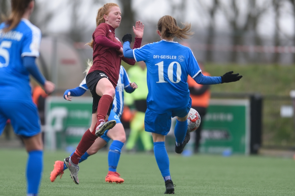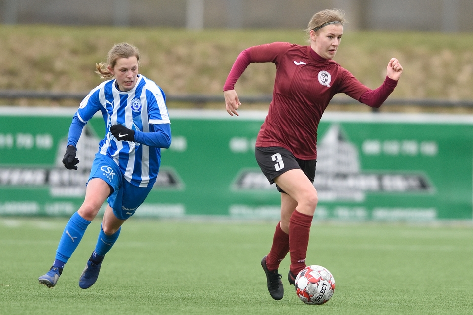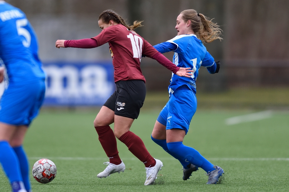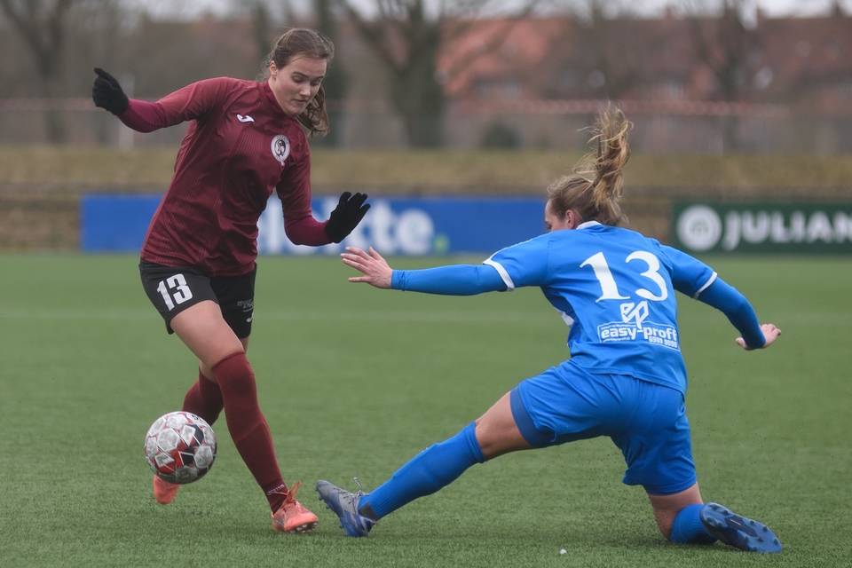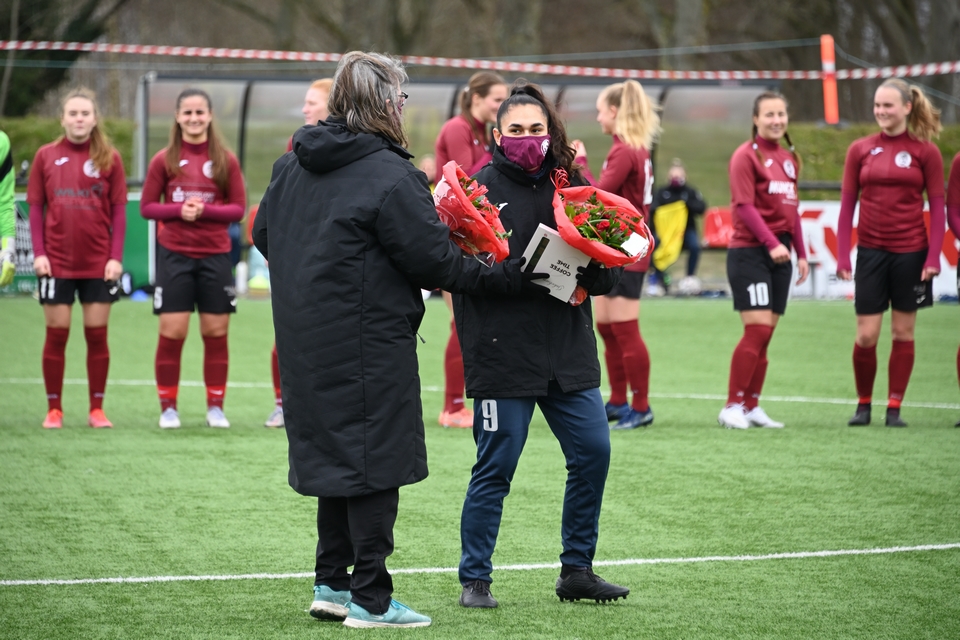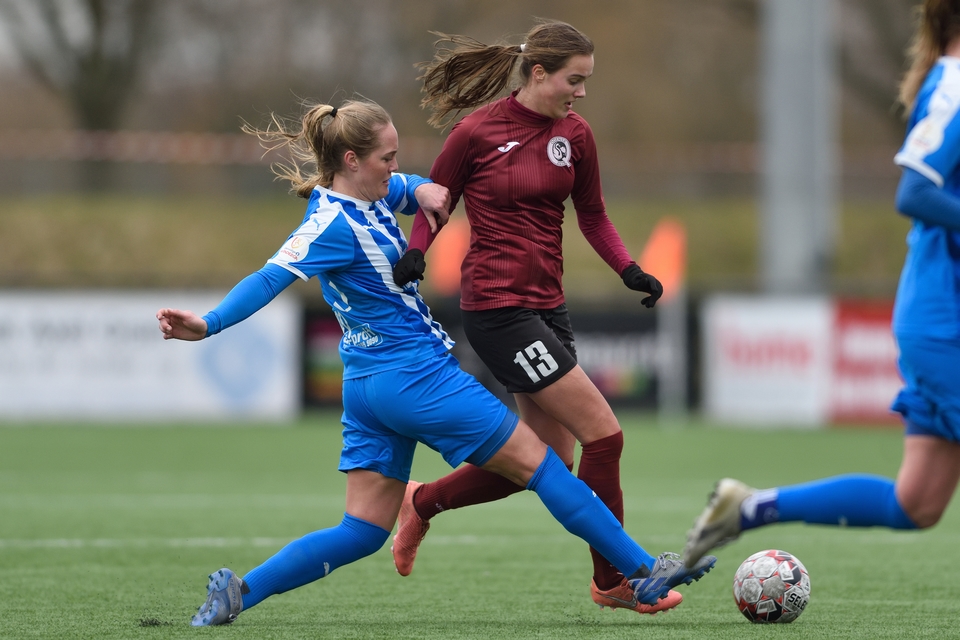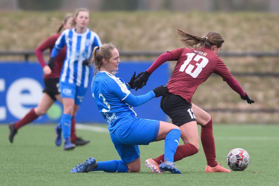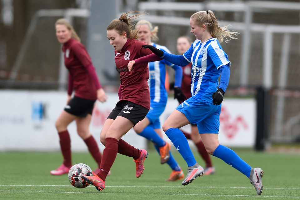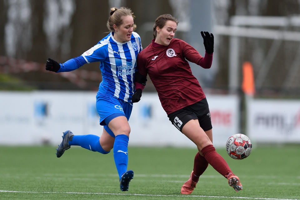 Udeholdet sad på tingene gennem det meste af 1. halvleg, og efter en lille halv times spil blev føringen udbygget yderligere. En hjørnesparksbold fandt Olivia Bergmann i det lille felt, og hun headede bolden i nettet til en 3-0 føring til gæsterne, som der heller ikke blev ændret på inden pausen.