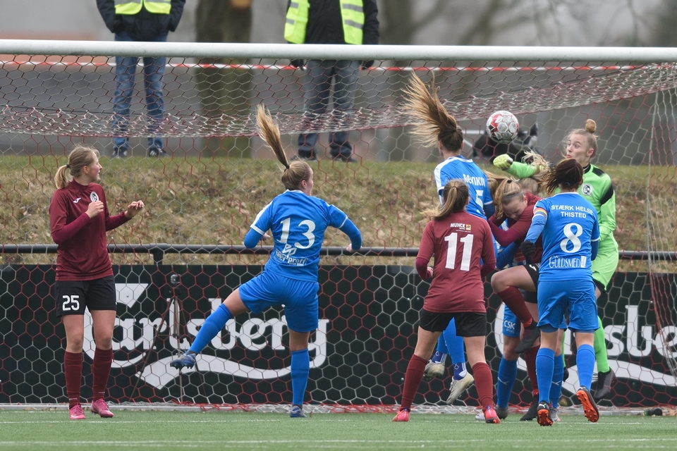 Hjemmeholdet kom bedre med fra starten af 2. halvleg. Få minutter efter genstarten stod Sofia Hvidbak for en tunnel og en afslutning i gæsternes felt, men Maya Bay i nordjydernes mål leverede en stor redning.